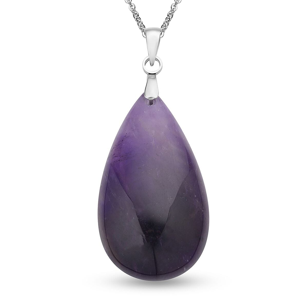 Amethyst Drop Pendant Necklace 20 Inches in Stainless Steel 45.00 ctw