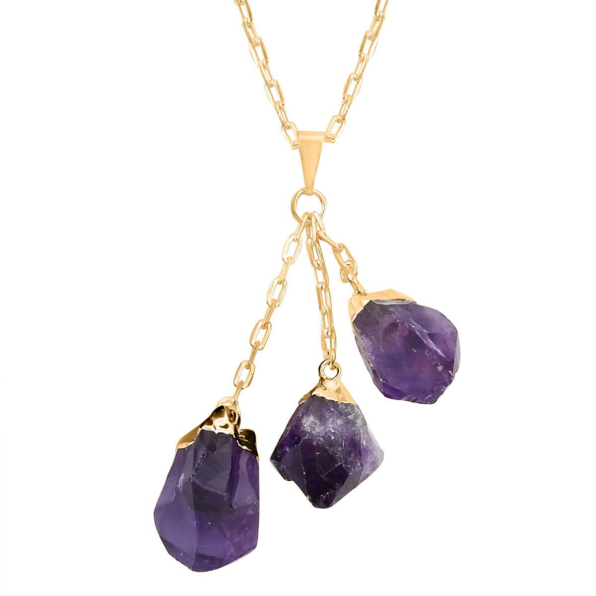 Amethyst Pendant Necklace 28.5-30.5 Inches in Goldtone 54.00 ctw
