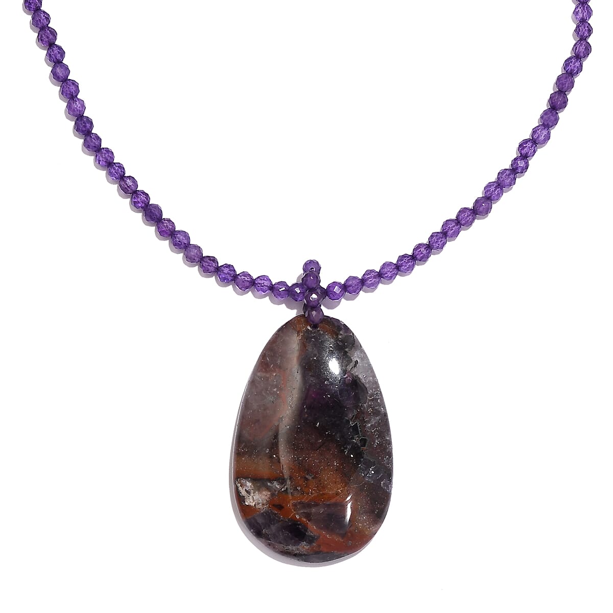 Amethyst Pendant with Beaded Necklace 20 Inches in Rhodium Over Sterling Silver 93.10 ctw