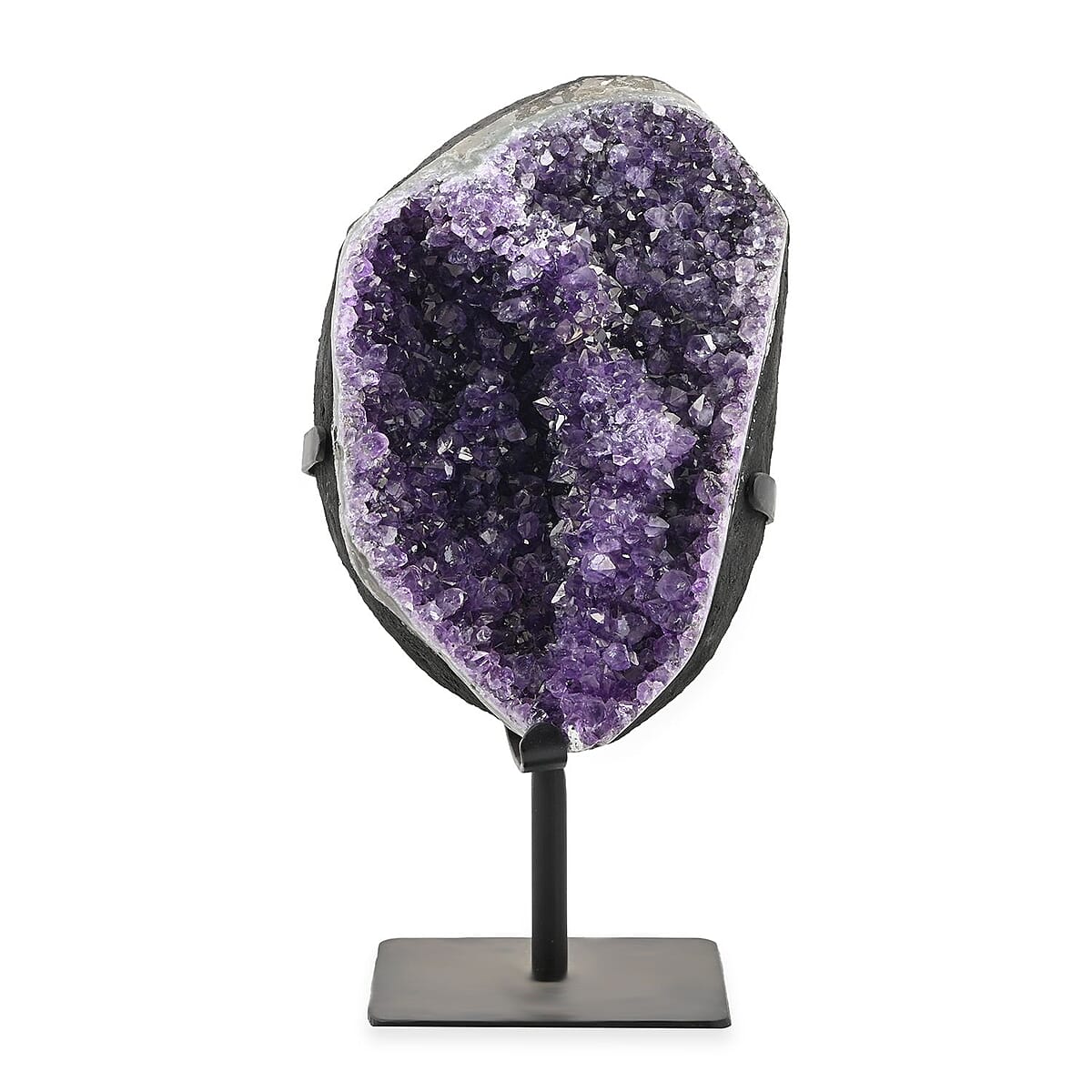 Add a sparkle of elegance to your space with our amethyst cut base, the perfect addition to your table décor collection. This exquisite piece features a decorative geode firmly anchored on a base, combining the natural beauty of amethyst with the sleekness of metal. The rich purple hue of the gemstone adds a serene and luxurious touch to any setting. It's ideal for adding a touch of sophistication without overwhelming your space. Easy to care for, simply clean it with a dry cloth to maintain its mesmerizing charm. Whether it's for your home or office, this unique piece is sure to captivate and inspire.