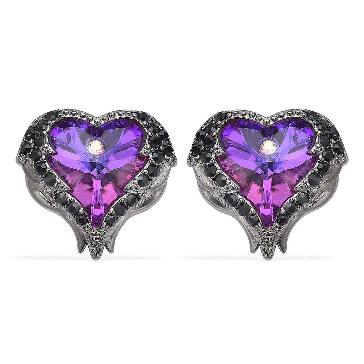 Angel Wing Austrian Purple, White & Aurora Borealis Crystal Heart Earrings in Black Rhodium Over Sterling Silver Jewelry