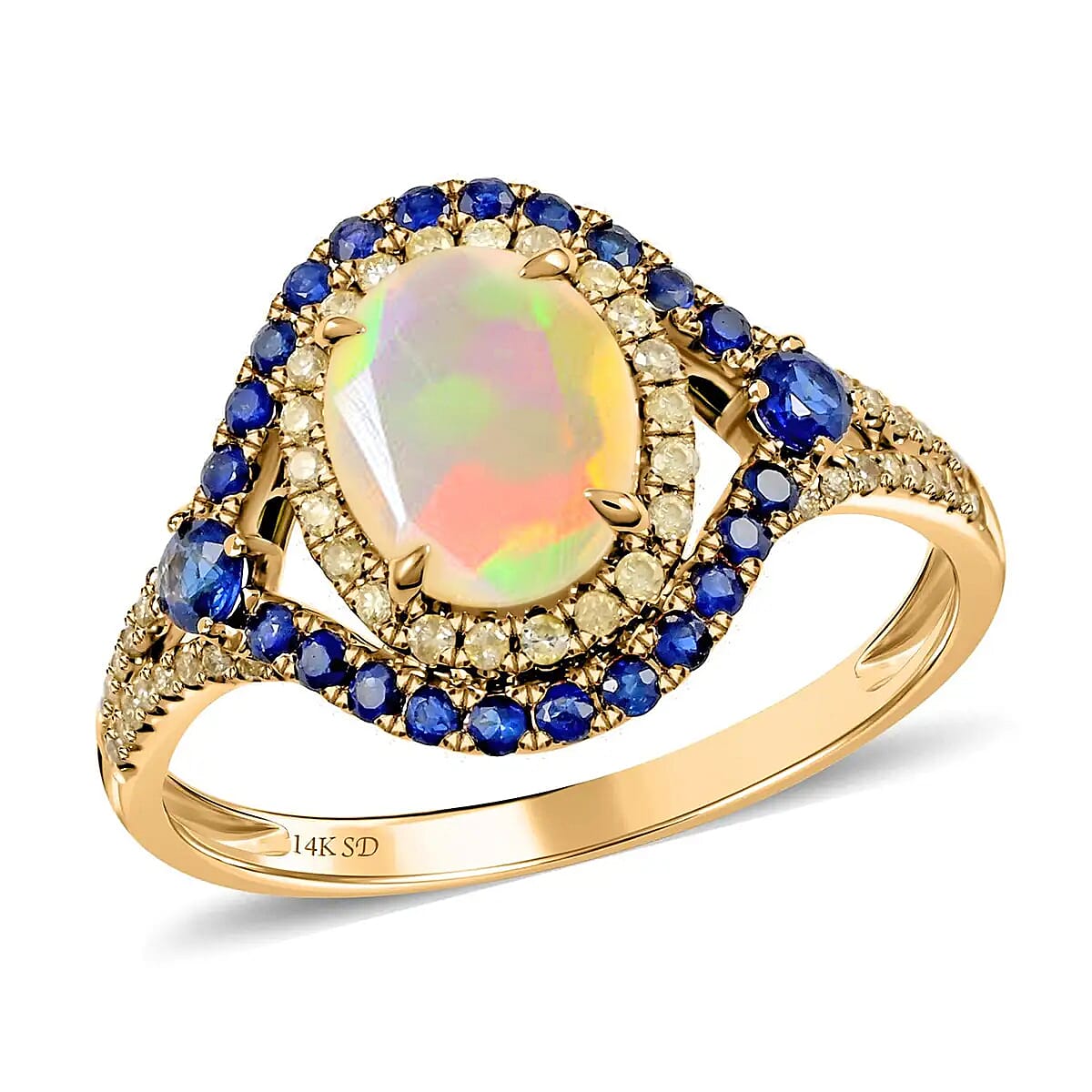 Ankur Treasure Chest Modani 14K Yellow Gold Ethiopian Welo Opal, Blue Sapphire, Natural Yellow Diamond SI Ring, Promise Rings (Size 6.0) 1.70 ctw