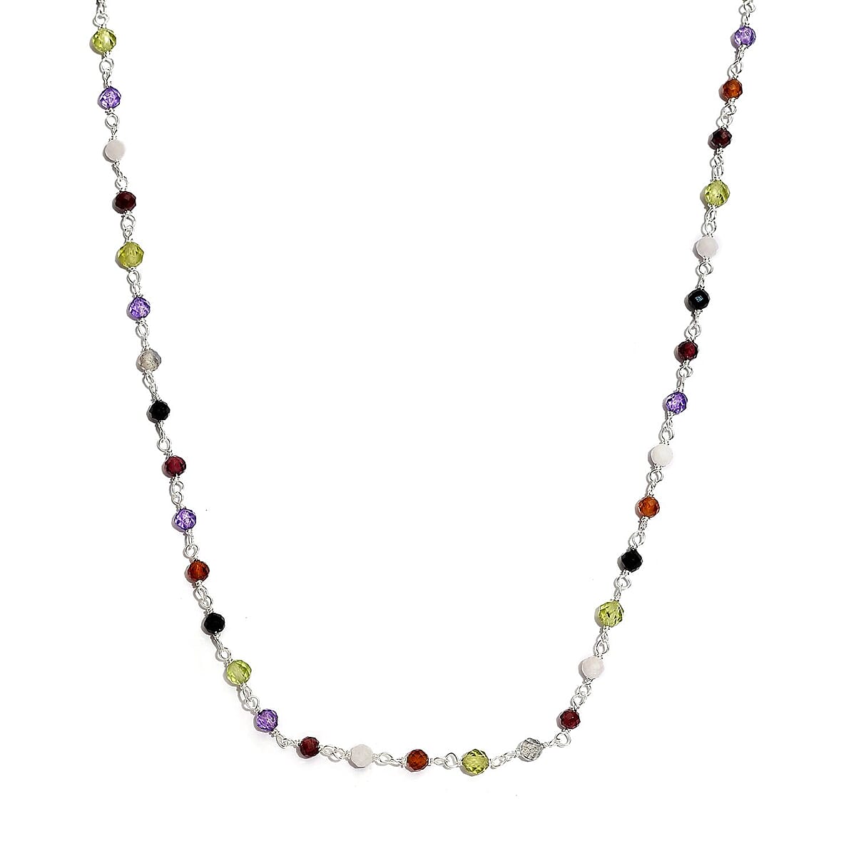 Ankur Treasure Chest Multi Gemstone Beaded Necklace (20 Inches) in Platinum Over Sterling Silver 13.50 ctw