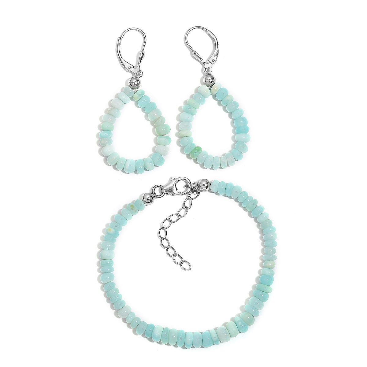 Ankur Treasure Chest Oregon Blue Opal Beaded Earrings and Bracelet (6-8In) in Platinum Over Sterling Silver 30.00 ctw