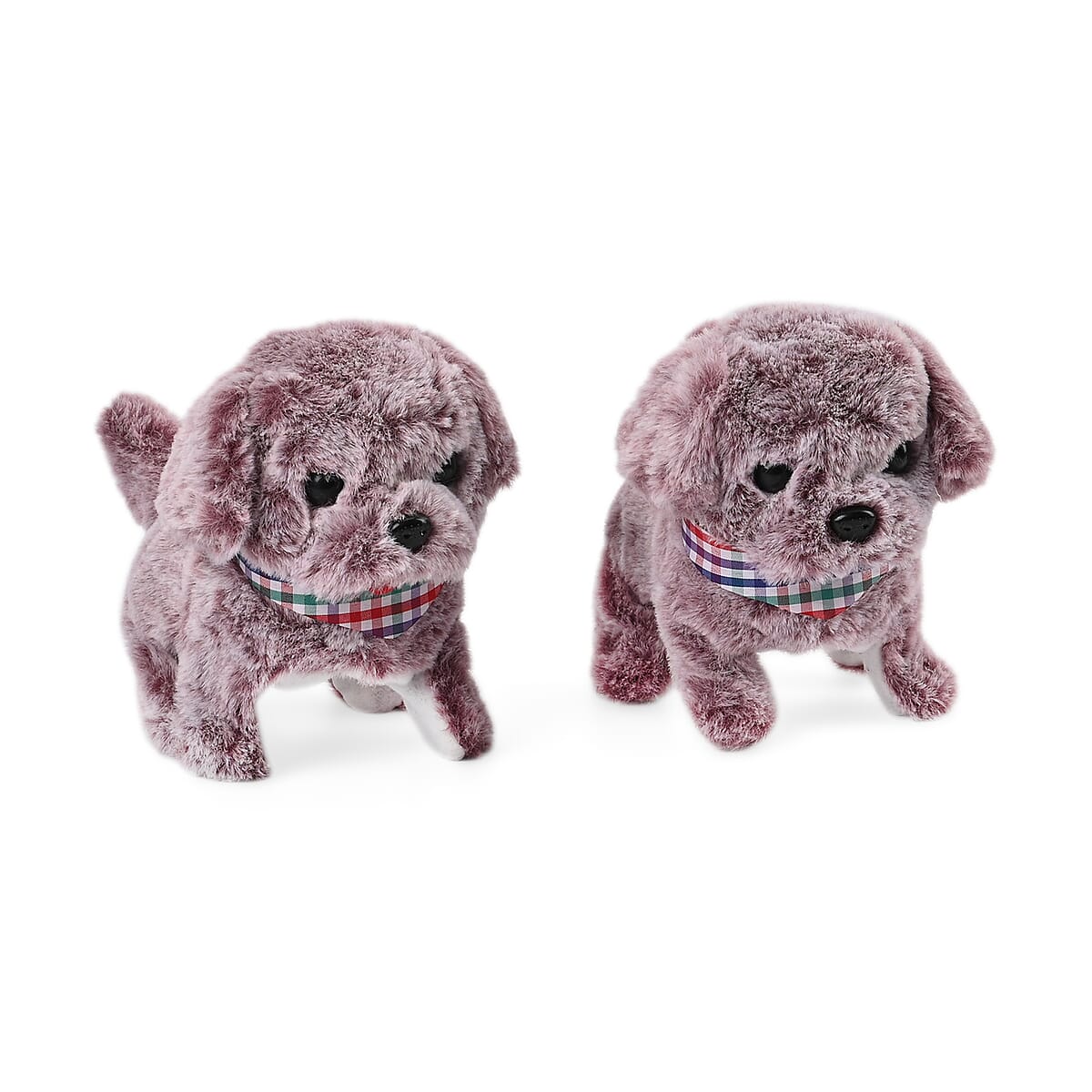 Delight your little ones with Ankur's Treasure Chest set of two-piece cute electric toys, a captivating collection of interactive plush toys designed to bring joy and entertainment to playtime. These battery-powered dog figurines, perfect for children seeking engaging playmates, feature sound and walk functions that make each toy come to life. Measuring 5.9 inches in both length and width, and standing at 4.2 inches tall, these toys are the ideal size for small hands to engage with and carry around. Made from soft plush and sturdy plastic, these child-friendly electronic pets are built for durability and countless adventures. Powered by 2 AA batteries (not included), these animated walking dogs offer hours of interactive fun, providing both companionship and amusement.