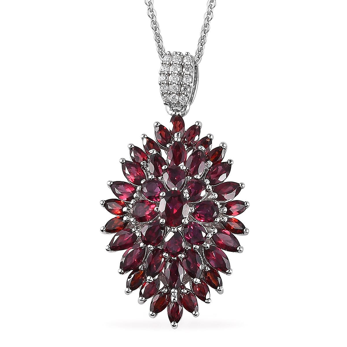 Anthill Garnet 6.15 ctw Floral Spray Pendant Necklace in Platinum Over Sterling Silver 20 Inches