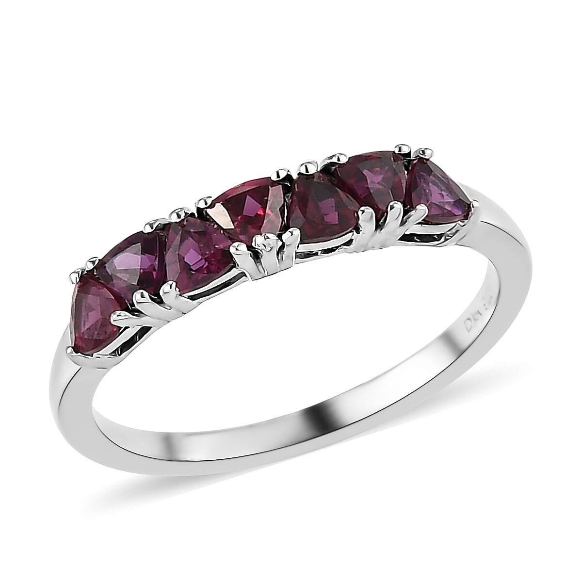 Anthill Garnet 7 Stone Ring in Platinum Over Sterling Silver (Size 8.0) 0.85 ctw