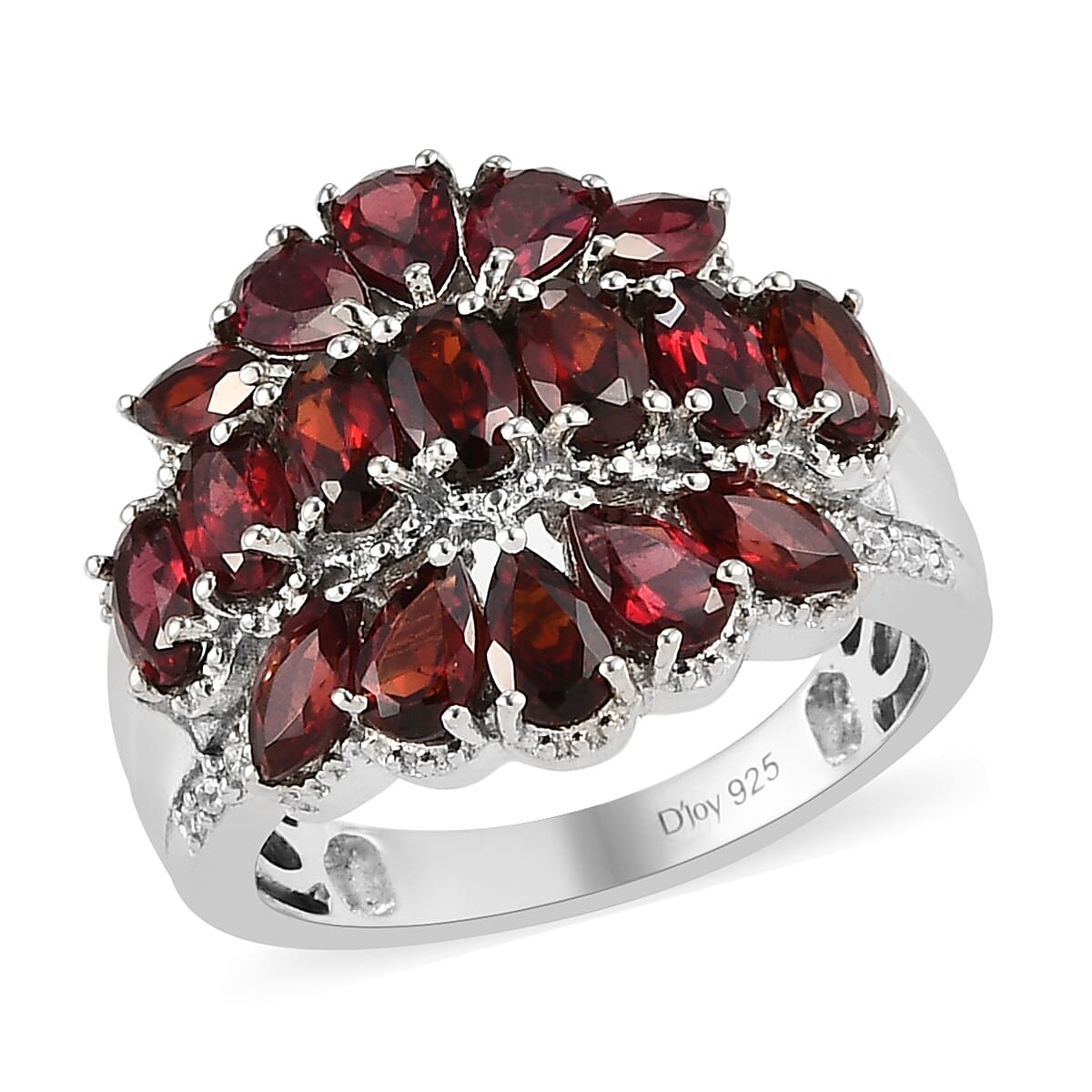 Anthill Garnet and Natural White Zircon Crown Ring in Platinum Over Sterling Silver 4.15 ctw