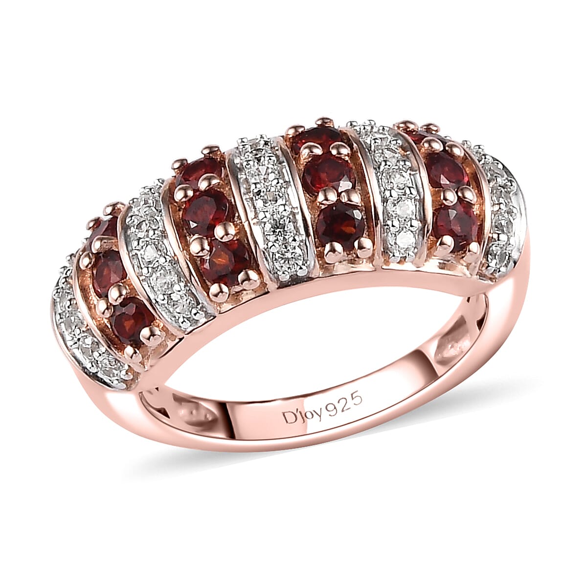 Anthill Garnet and Natural White Zircon Ring in Vermeil Rose Gold Over Sterling Silver (Size 8.0) 1.10 ctw