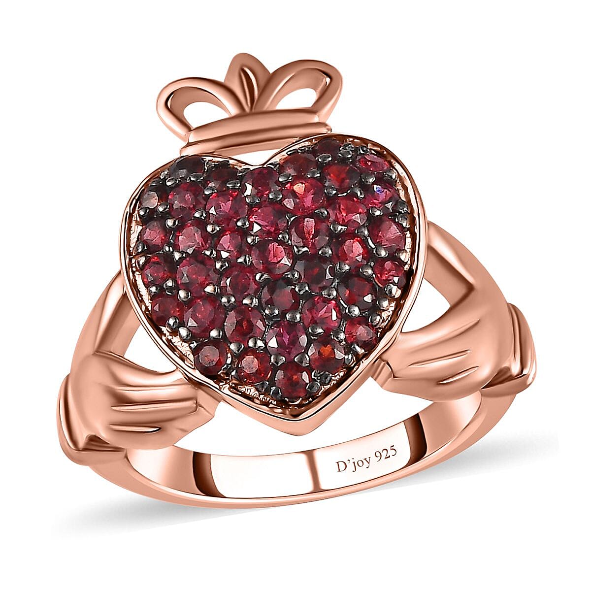 Anthill Garnet Claddagh Ring in Vermeil Rose Gold Over Sterling Silver (Size 7.0) 1.10 ctw