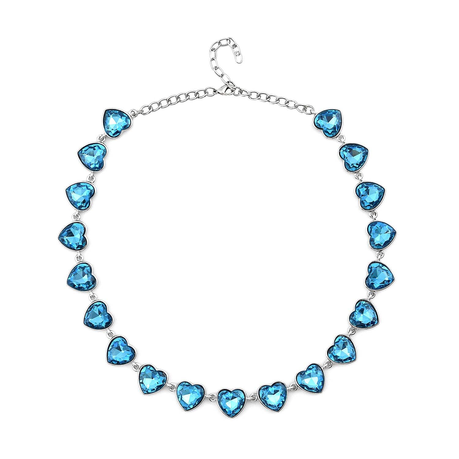 Aqua Blue Color Glass Heart Necklace 20-22 Inches in Silvertone