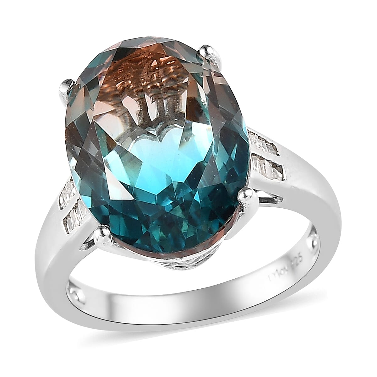 This Aqua Terra Costa quartz ring is a stunning jewelry piece. This sterling silver ring features a triplet quartz in the center, highlighted by sparkling diamonds on the shank. The gemstone and diamonds are well set on the band, enhancing their radiance and giving a ring a luxurious and elegant look. The combination of captivating gemstones, shimmering diamonds, and platinum over sterling silver makes this fashion ring a truly remarkable piece that is perfect for special occasions or a stunning addition to any jewelry collection.