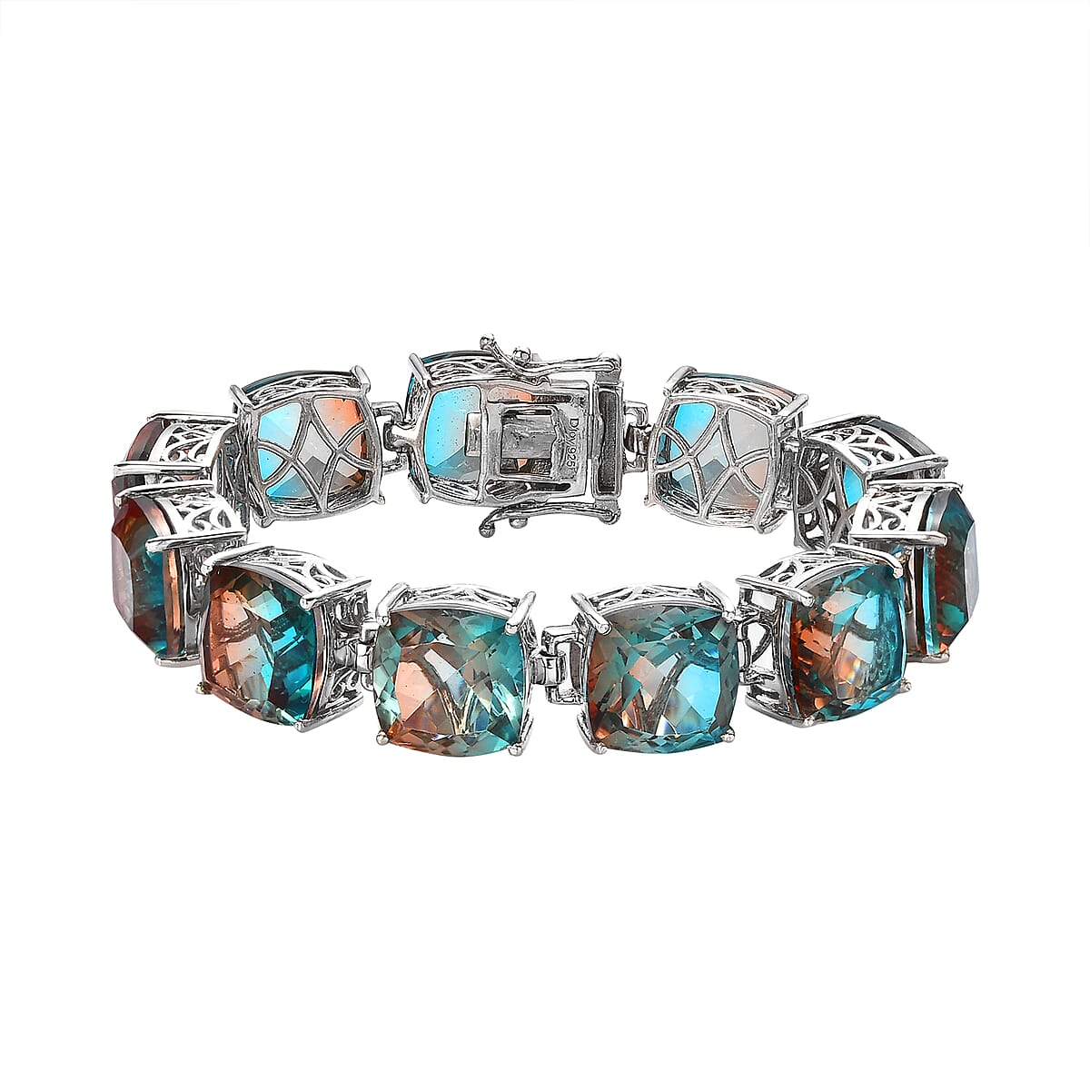 Aqua Terra Costa Quartz (Triplet) Bracelet in Platinum Over Sterling Silver (6.50 In) 68.75 ctw