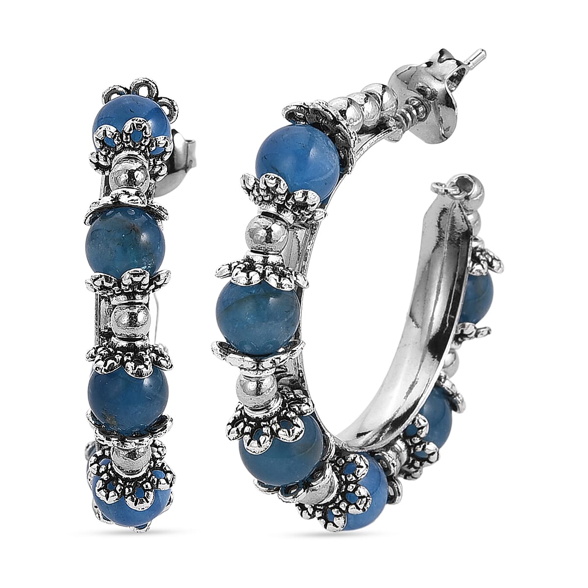 Aquamarine 25.00 ctw Beaded Station Hoop Earrings in Silvertone
