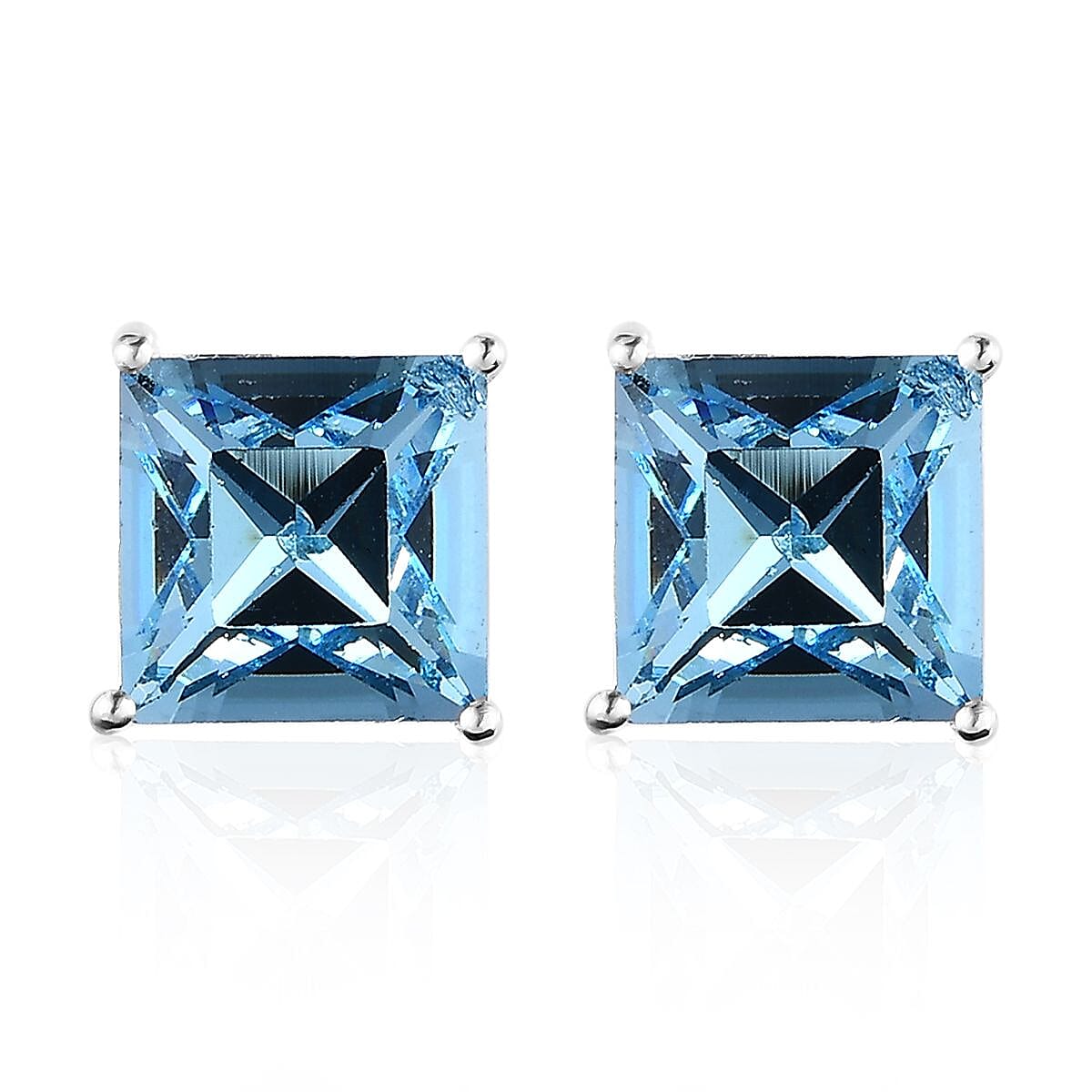 Aquamarine Color Crystal Solitaire Stud Earrings in Sterling Silver 5.00 ctw