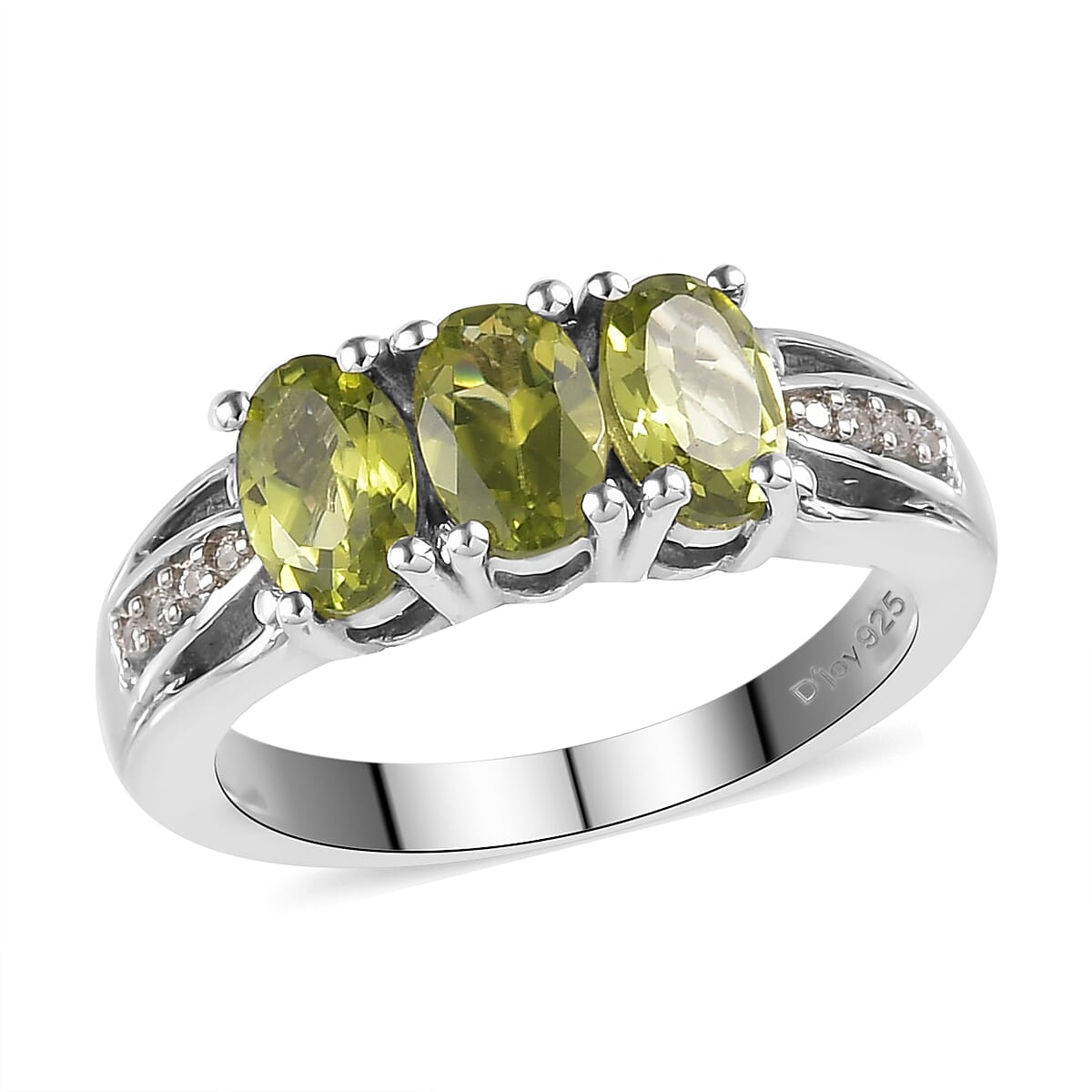 Arizona Peridot and Natural White Zircon Ring in Platinum Over Sterling Silver (Size 7.0) 1.60 ctw
