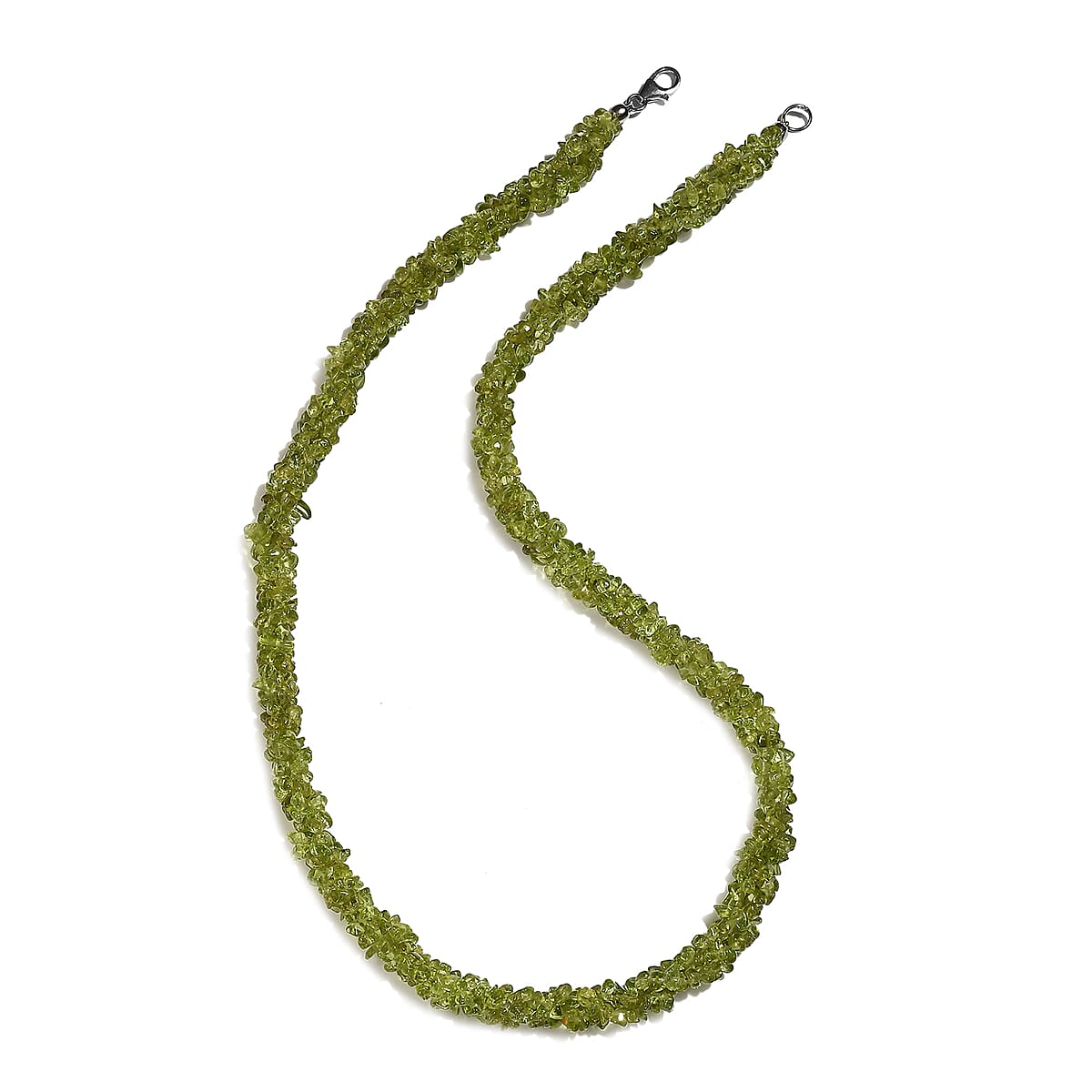 Arizona Peridot Chips Beaded Necklace 20 Inches in Sterling Silver 207.50 ctw