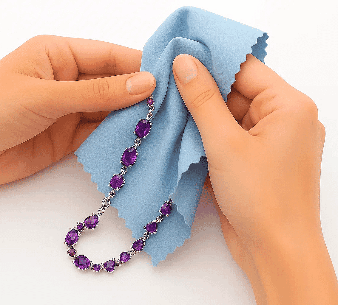 A. Clean your bracelet with mild soap and lukewarm water, using a soft cloth or brush. Avoid ultrasonic cleaners, and store it separately to prevent scratches from harder stones like diamonds or sapphires.