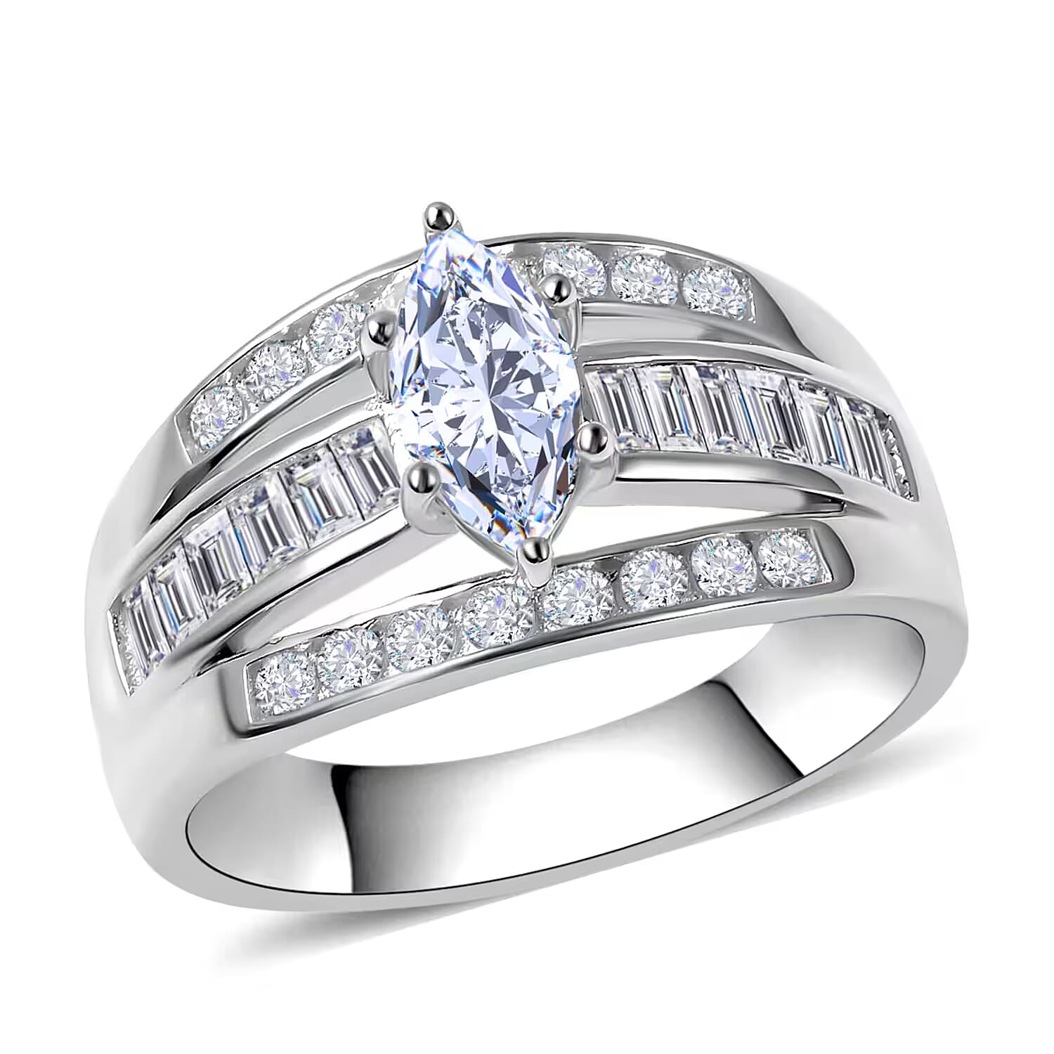 Simulated Diamond Band Ring in Sterling Silver, Three Row Simulated Diamond Ring, Engagement Rings For Women, Promise Rings 3.00 ctw