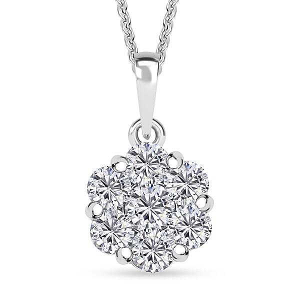 Moissanite 1.30 ctw Floral Pendant Necklace in Rhodium Over Sterling Silver 20 Inches