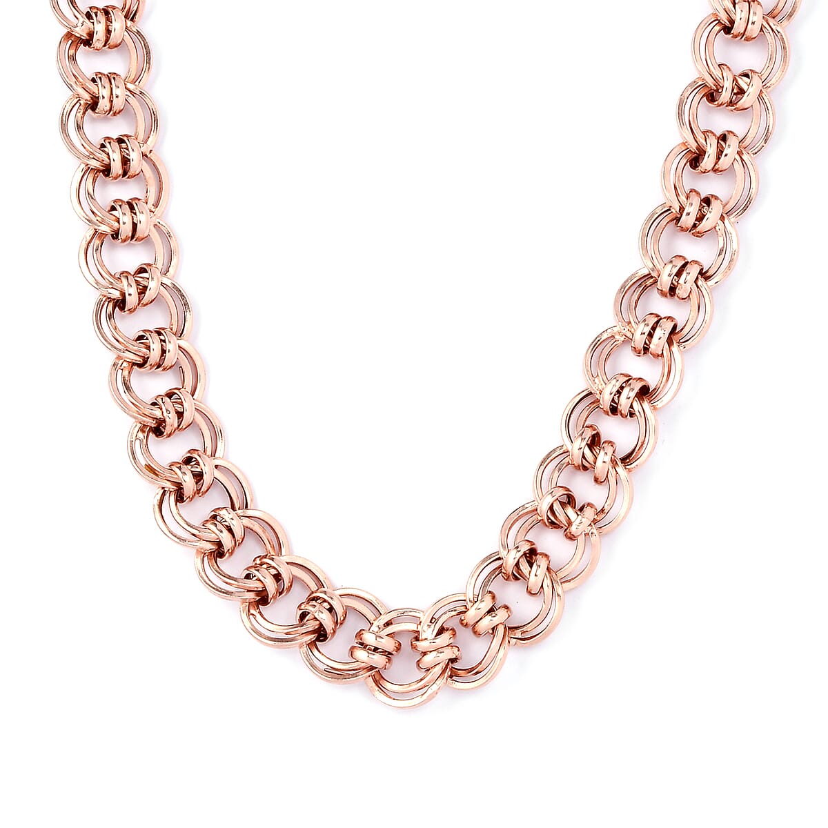 Artisan Crafted 14K Rose Gold Over Sterling Silver Double Link Necklace 20 Inches 28.40 Grams