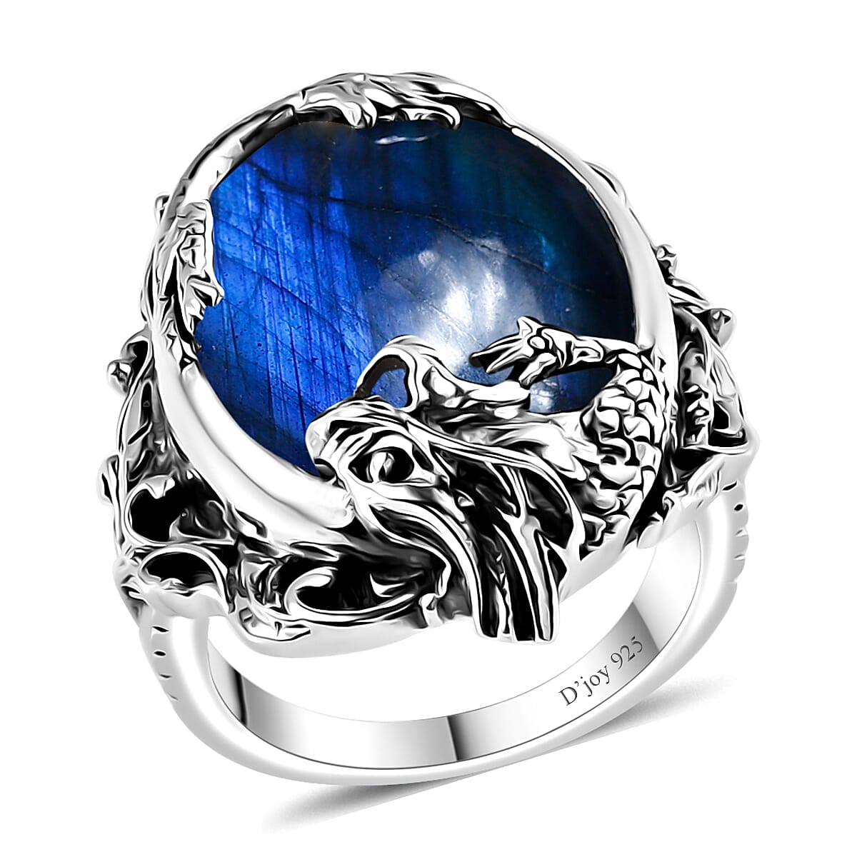 Artisan Crafted AAA Malagasy Labradorite Dragon Ring in Sterling Silver (Size 11.0) 17.70 ctw