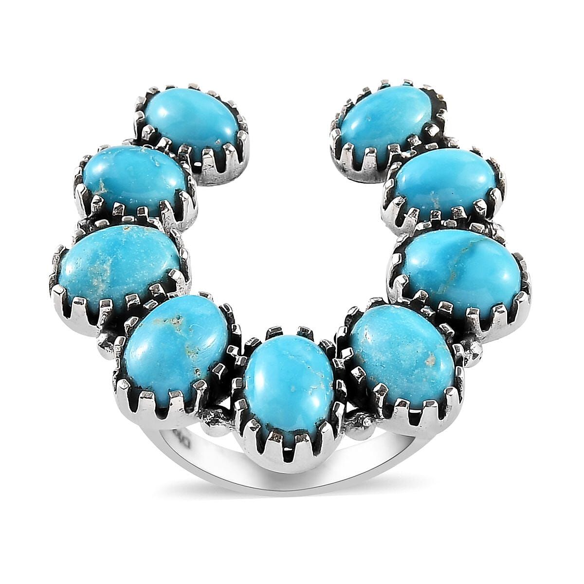 Artisan Crafted American Natural Blue Ridge Turquoise Horseshoe Ring in Sterling Silver 7.10 ctw