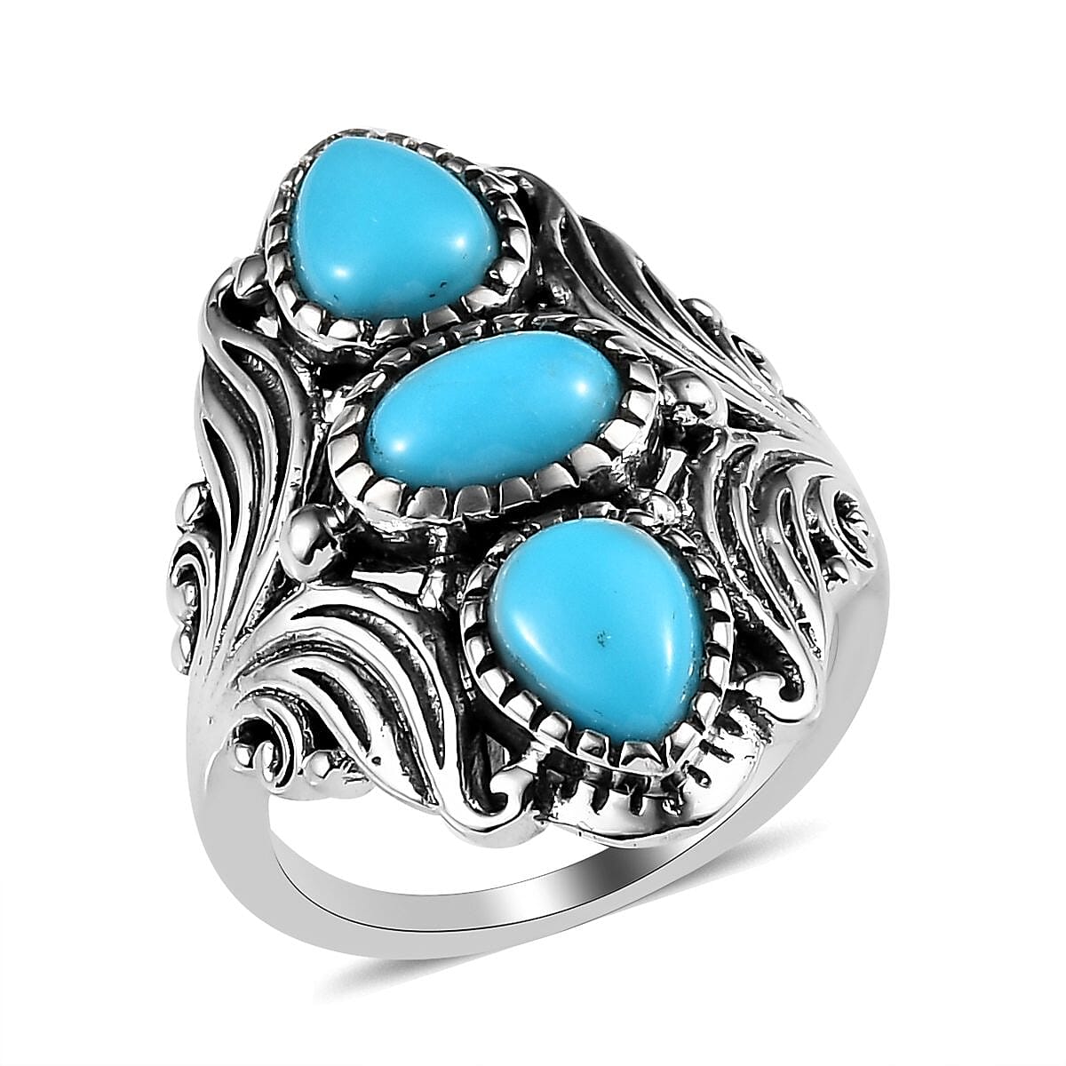 Artisan Crafted American Natural Sleeping Beauty Turquoise 3 Stone Ring in Sterling Silver 2.00 ctw
