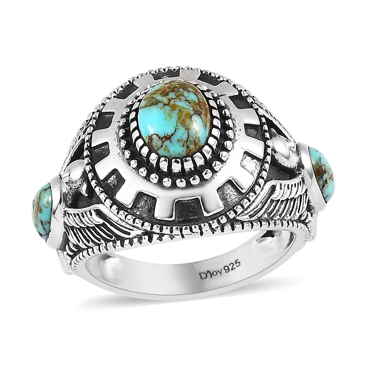 Artisan Crafted Blue Moon Turquoise Eagle Ring in Sterling Silver (Size 8.0) 2.10 ctw