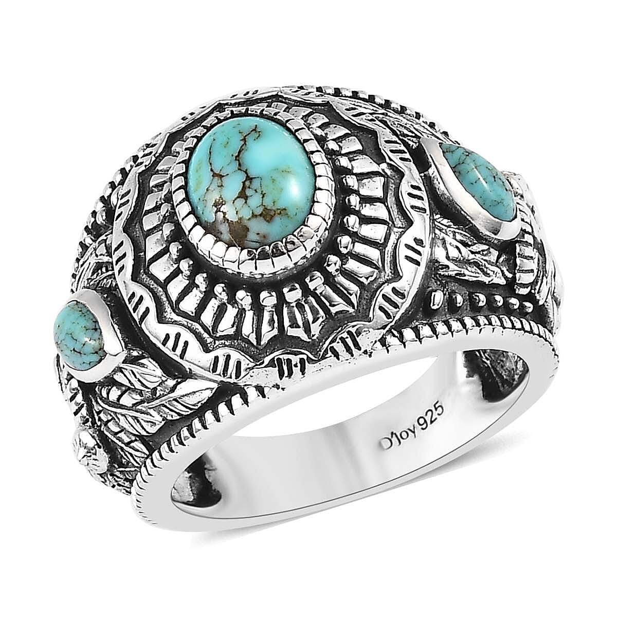 Artisan Crafted Blue Moon Turquoise Leaves Ring in Sterling Silver (Size 7.0) 1.60 ctw