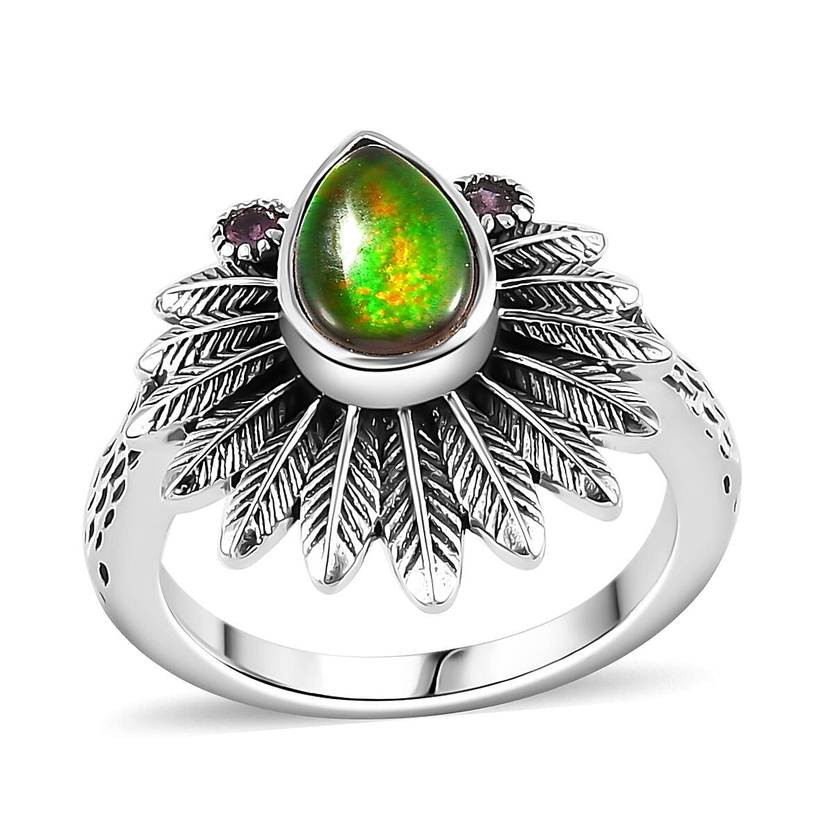 Artisan Crafted Canadian Ammolite and Orissa Rhodolite Garnet Native American Head Ring in Sterling Silver (Size 6.0) 0.15 ctw