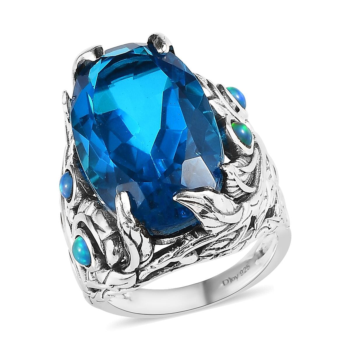 Artisan Crafted Caribbean Quartz (Triplet) and Ethiopian Welo Opal Ring in Sterling Silver (Size 7.0) 15.35 ctw