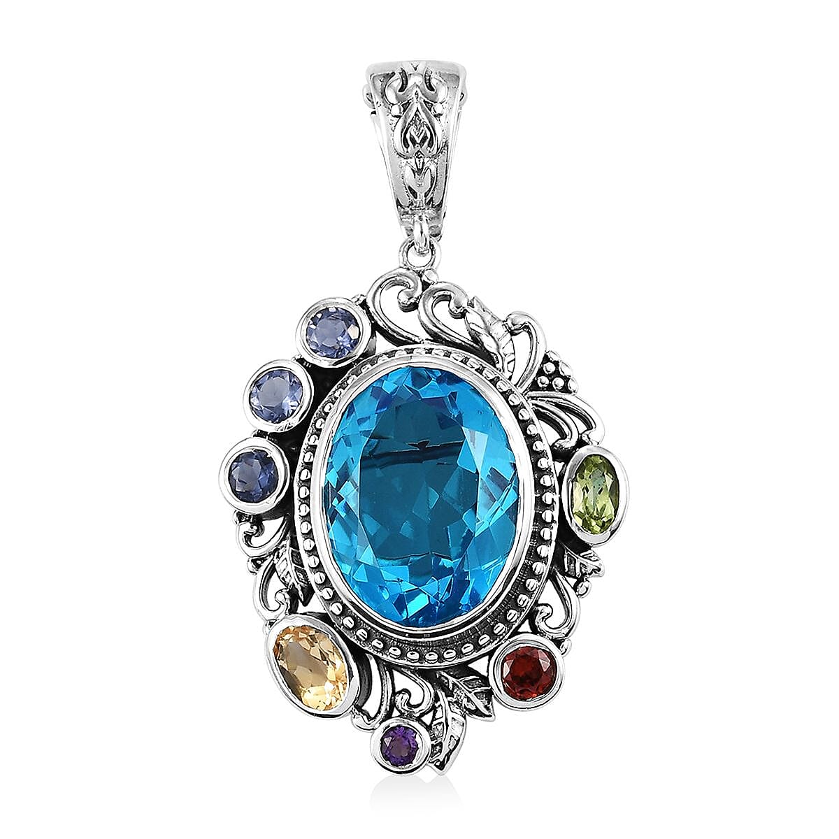 Artisan Crafted Caribbean Quartz (Triplet) and Multi Gemstone Pendant with Enhancer Loop in Sterling Silver 10.85 ctw