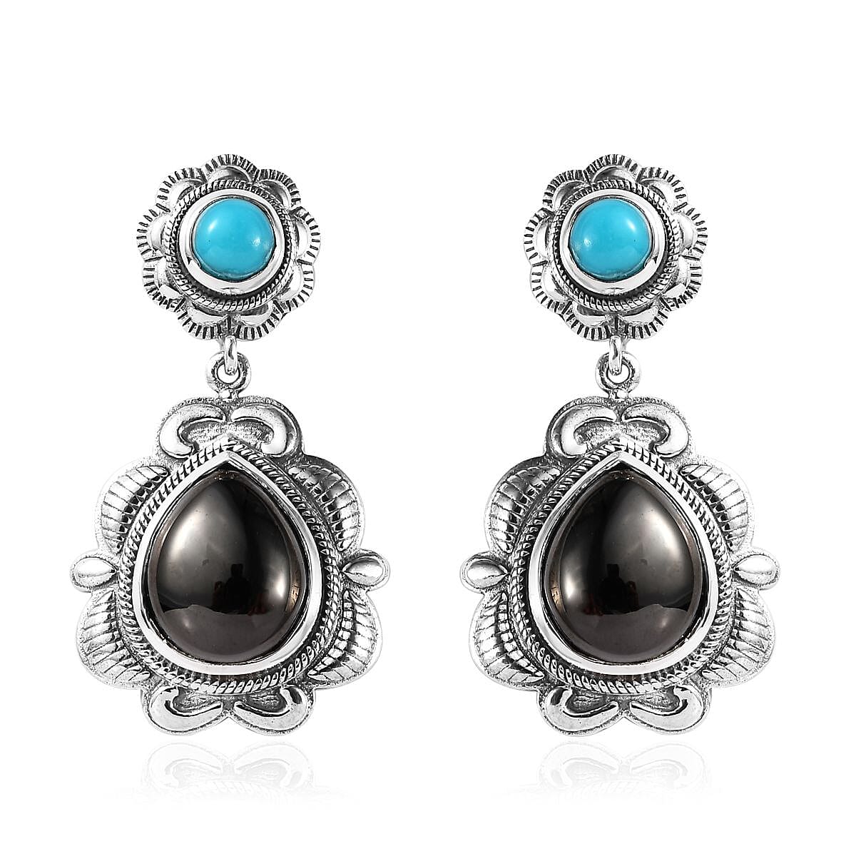 Artisan Crafted Elite Shungite and Sleeping Beauty Turquoise Dangle Earrings in Sterling Silver 6.35 ctw
