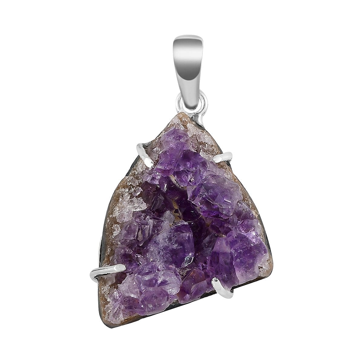 A mere gaze of this artisan-crafted geode Amethyst solitaire pendant might make you redefine your entire stylebook. Crafted with the utmost diligence, this prong-set crystalized amethyst geode exhibits the interesting play of purple tone. As a result, the jewel is the perfect accessory to set some ground-breaking trends.
