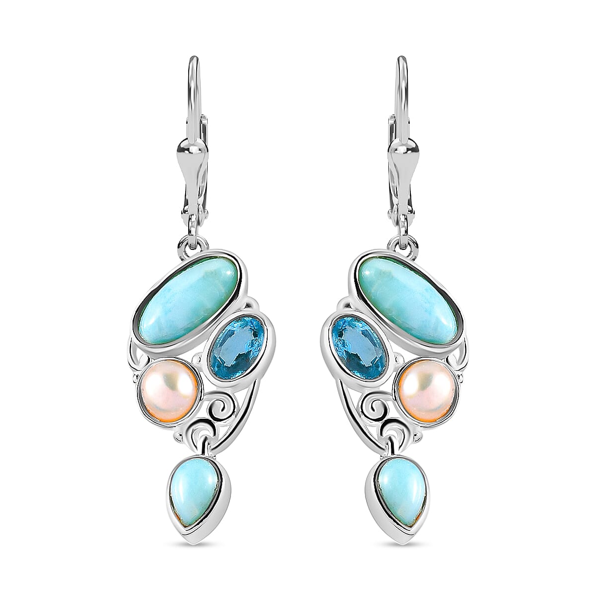 Artisan Crafted Larimar Multi Gemstone Earrings in Sterling Silver, Fancy Dangle Earrings, Larimar Earrings 5.75 ctw