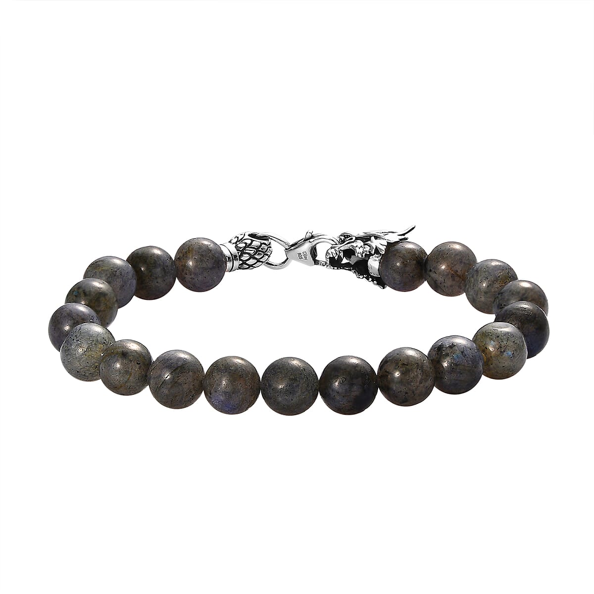 Elevate your style with this luxurious Malagasy labradorite beaded dragon clasp bracelet in sterling silver. The exotic beauty of the labradorite stones, coupled with the intricate and mesmerizing clasp, creates a piece of jewelry that is both striking and enchanting.