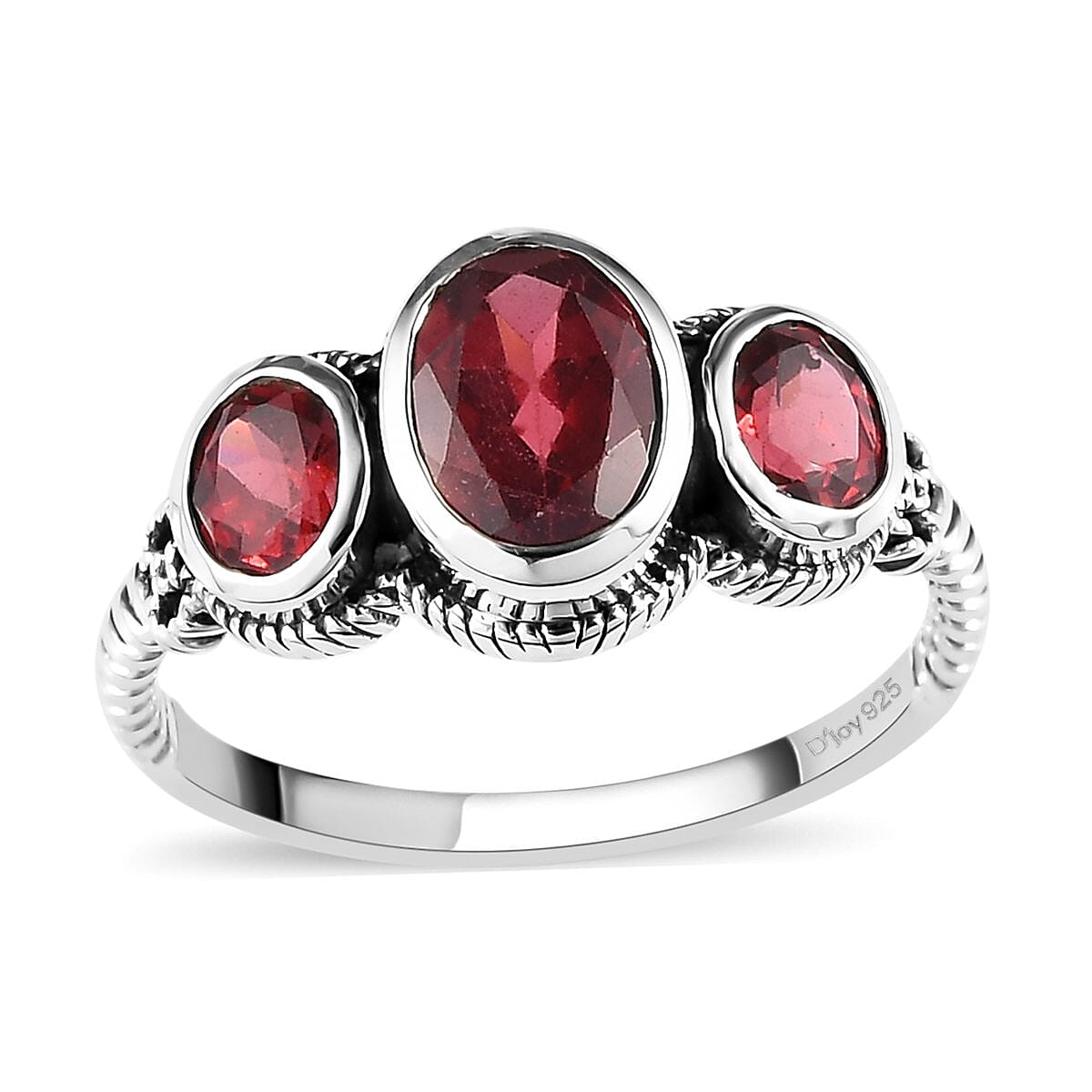 Artisan Crafted Natural Tanzanian Wine Garnet 3 Stone Ring in Sterling Silver 2.25 ctw