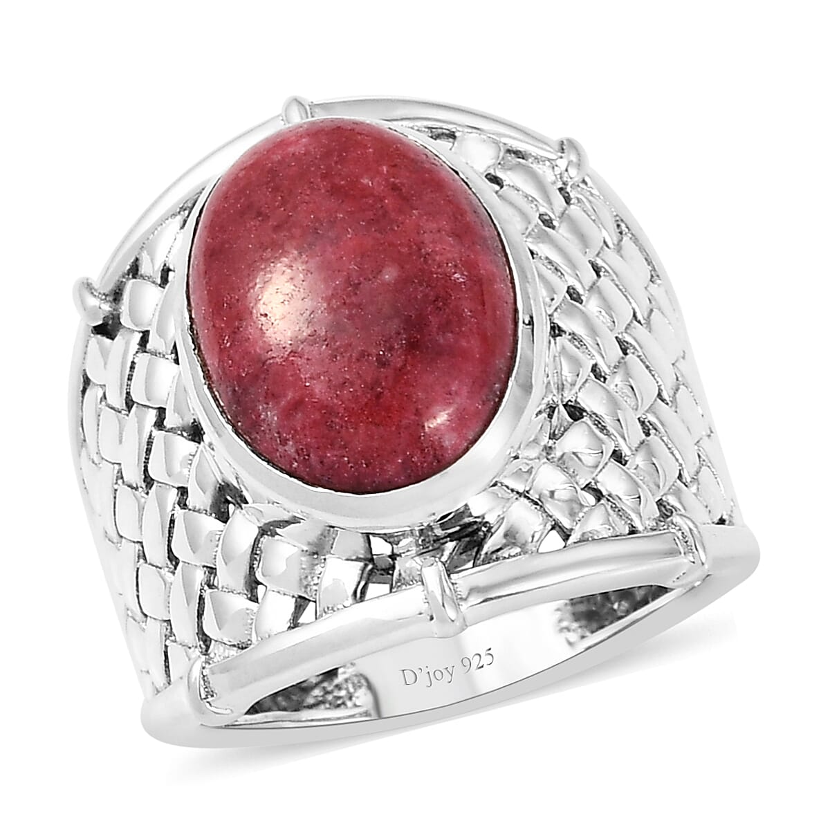 Artisan Crafted Norwegian Thulite Weave Pattern Band Ring in Sterling Silver (Size 9.0) 7.25 Grams 7.15 ctw
