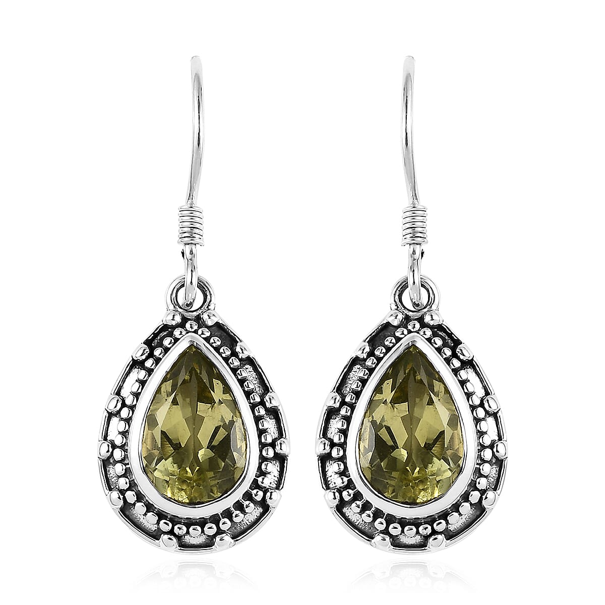 Add a pop of color to your earlobes with these Ouro Verde Quartz wire hook closure earrings in sterling silver are a timeless addition to your jewelry collection. These beauties feature a pear-cut precision complemented with a metal framework around the edges in a tear-drop design beaming as they showcase their unique yellow-green hue.