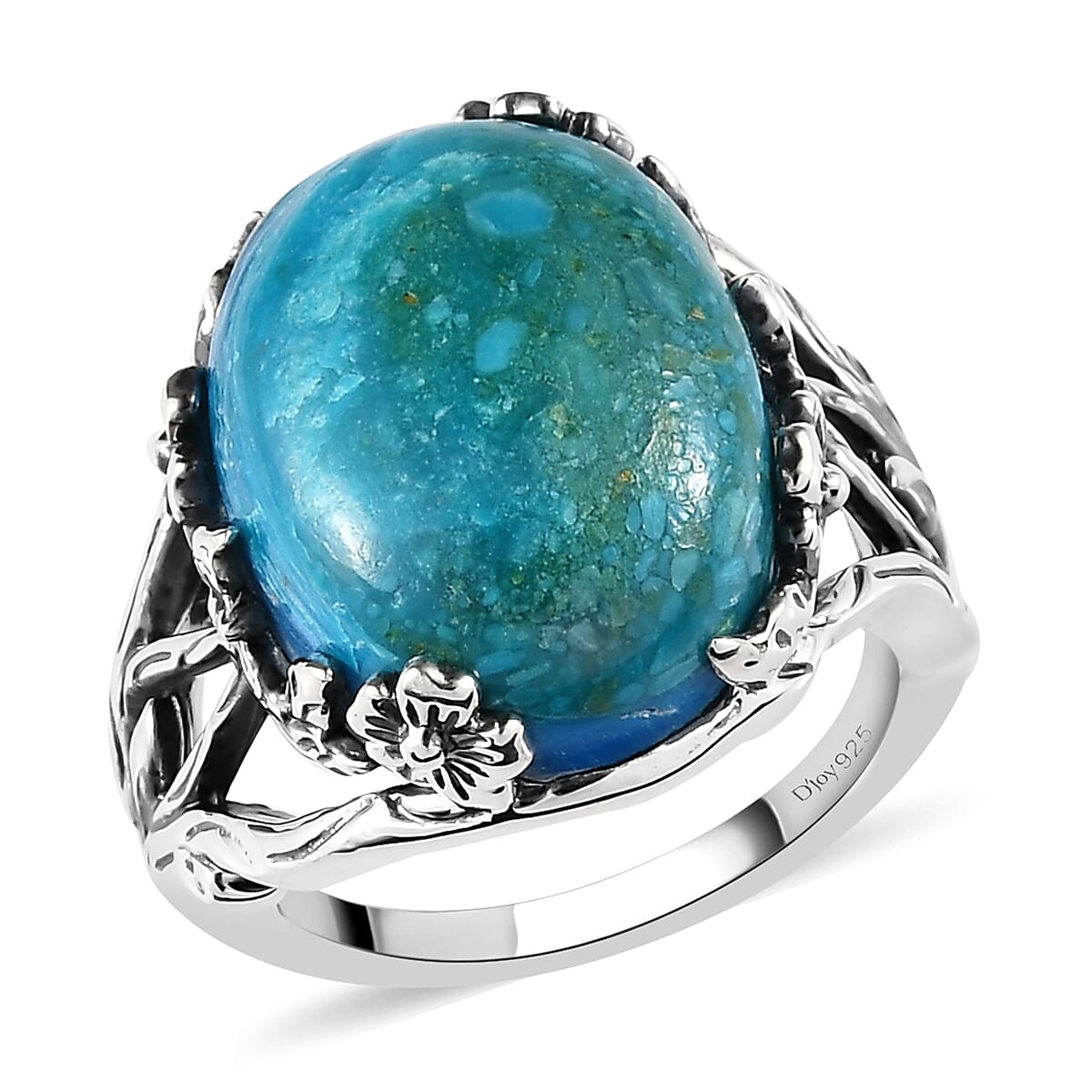 Inspired by the beauty of nature, this Peruvian Opalina ring symbolizes beauty and grace. The branched shank like the tree embraces flowers and leaves that encircle the oval-shaped solitaire gem representing the relationship between mother earth and flora. Occurs only in Peru, Opalina is a unique opalized blend of chrysocolla. Color ranges from blue to greenish blue and the striking natural patterns take the form of spots, streaks, veins, and different stunning patterns. This artisan-crafted ring can be paired with any outfit.