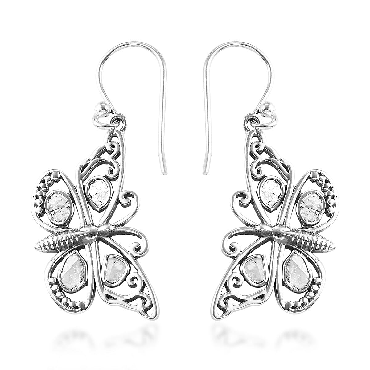 Artisan Crafted Polki Diamond Butterfly Earrings in Sterling Silver 0.80 ctw