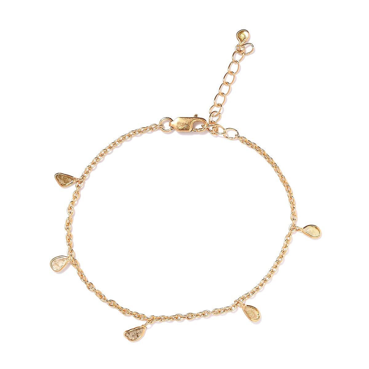 Artisan Crafted Polki Yellow Diamond Charm Bracelet in 14K Yellow Gold Over Sterling Silver (Adjustable) 0.50 ctw