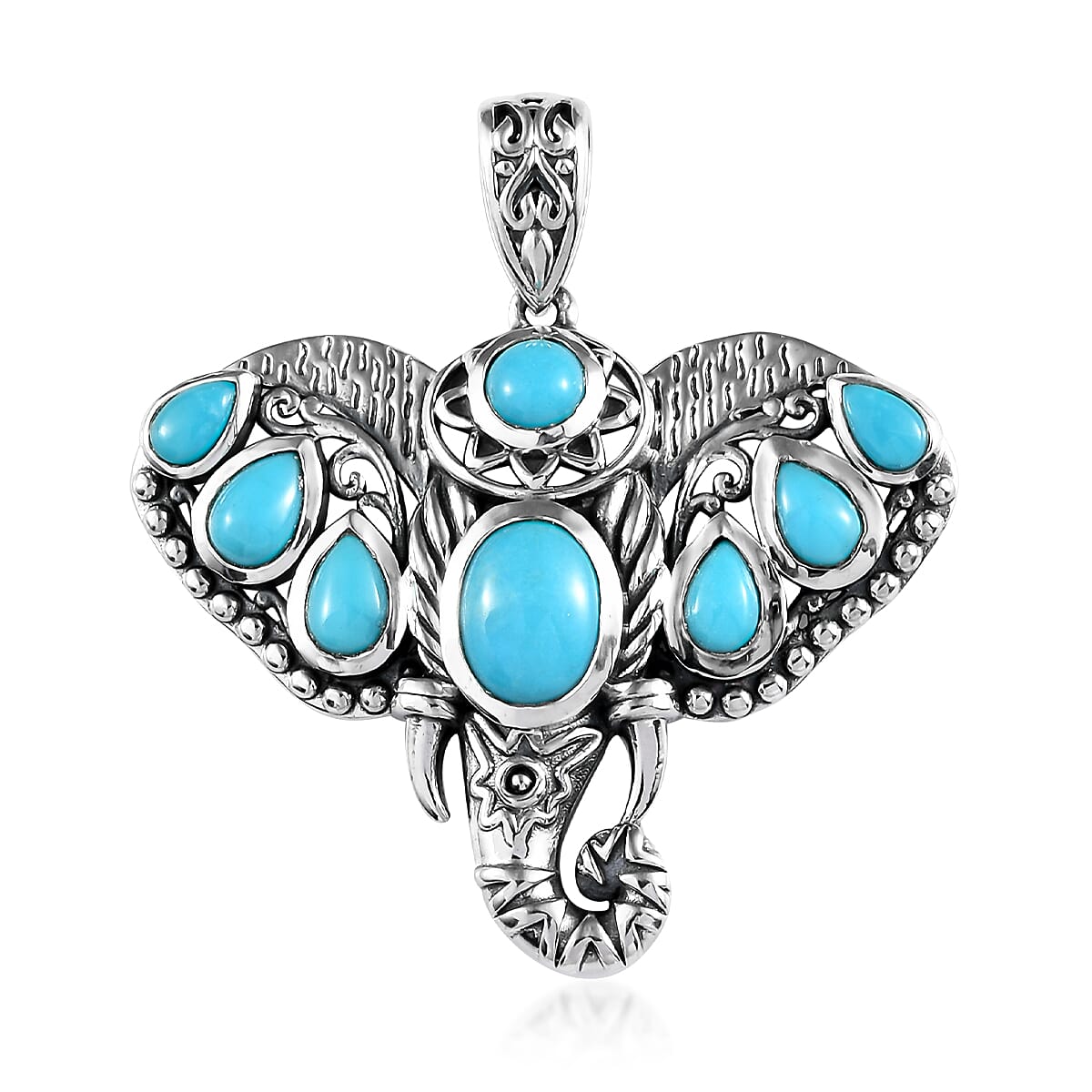 Artisan Crafted Premium Sleeping Beauty Turquoise Elephant Head Pendant in Sterling Silver 4.10 ctw