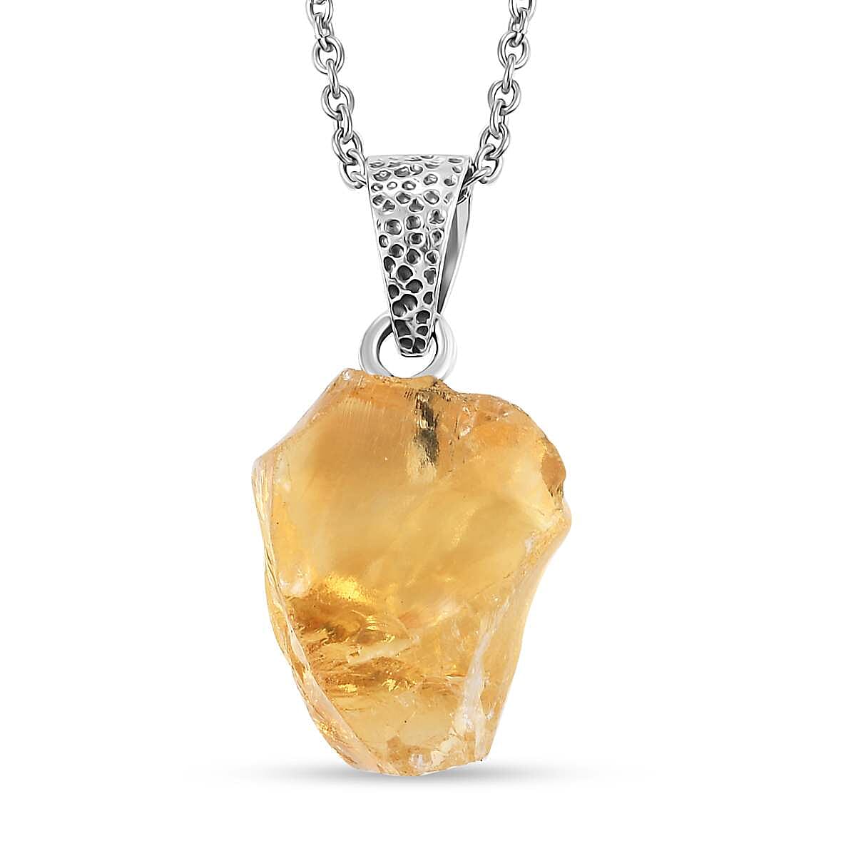 Artisan Crafted Rough Cut Brazilian Citrine 19.75 ctw Solitaire Pendant in Sterling Silver with Stainless Steel Necklace 20 Inches