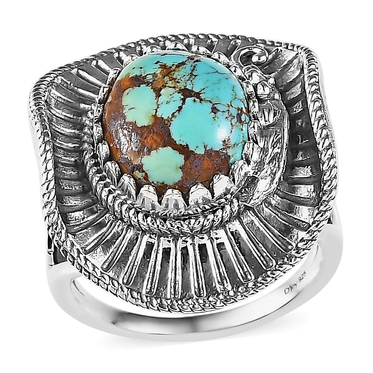 Artisan Crafted Royston Turquoise Cowboy Hat Ring in Sterling Silver (Size 6.0) 4.90 ctw