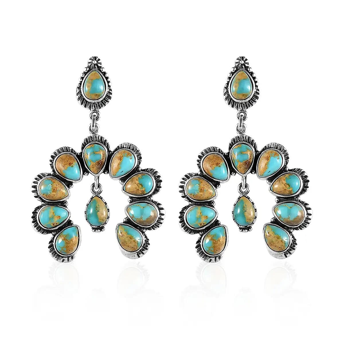 Artisan Crafted Royston Turquoise Earrings | Squash Blossom Earrings |Sterling Silver Earrings | Dangle Earrings 15.65 ctw