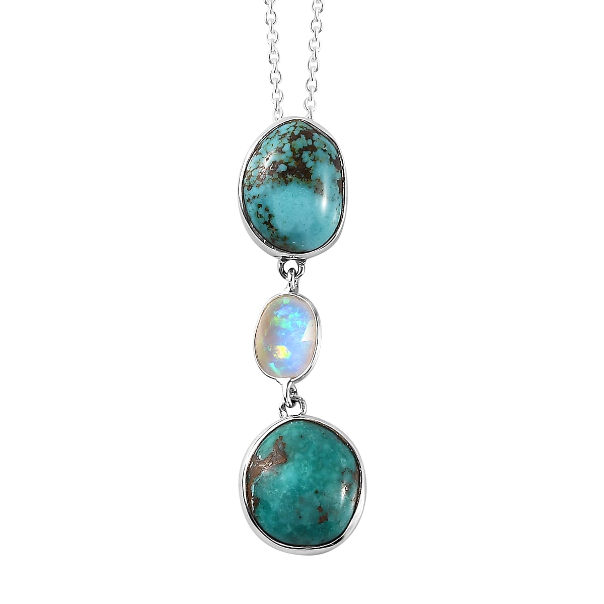 Artisan Crafted Sierra Nevada Turquoise and Ethiopian Welo Opal Pendant Necklace 20 inches in Sterling Silver 9.00 ctw