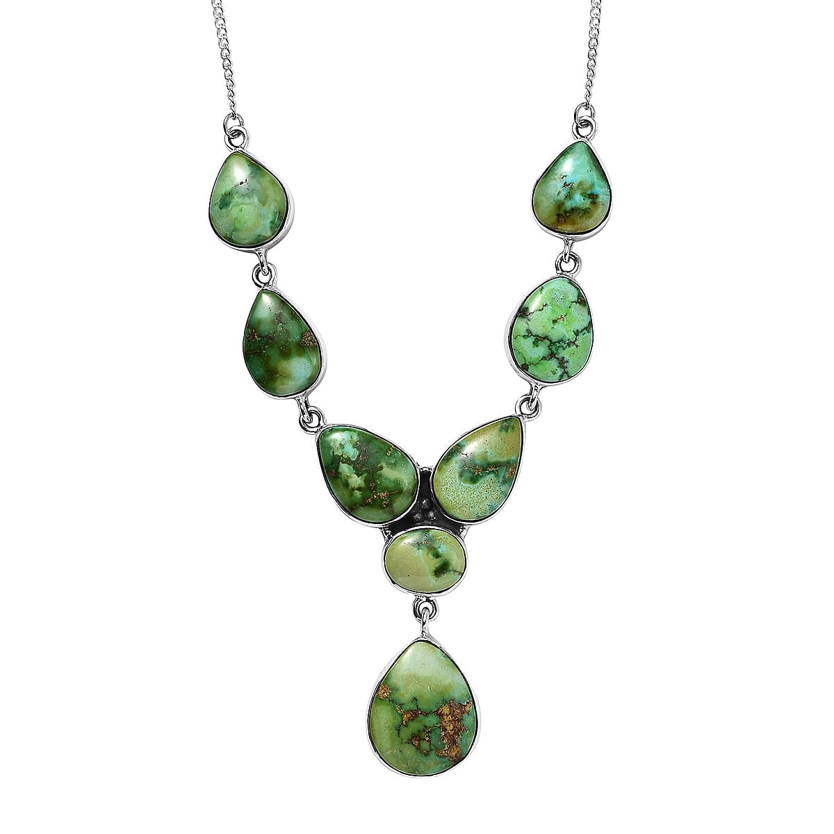 Artisan Crafted Sonoran Gold Turquoise Drop Necklace 18-20 Inches in Black Oxidized Sterling Silver 56.25 ctw