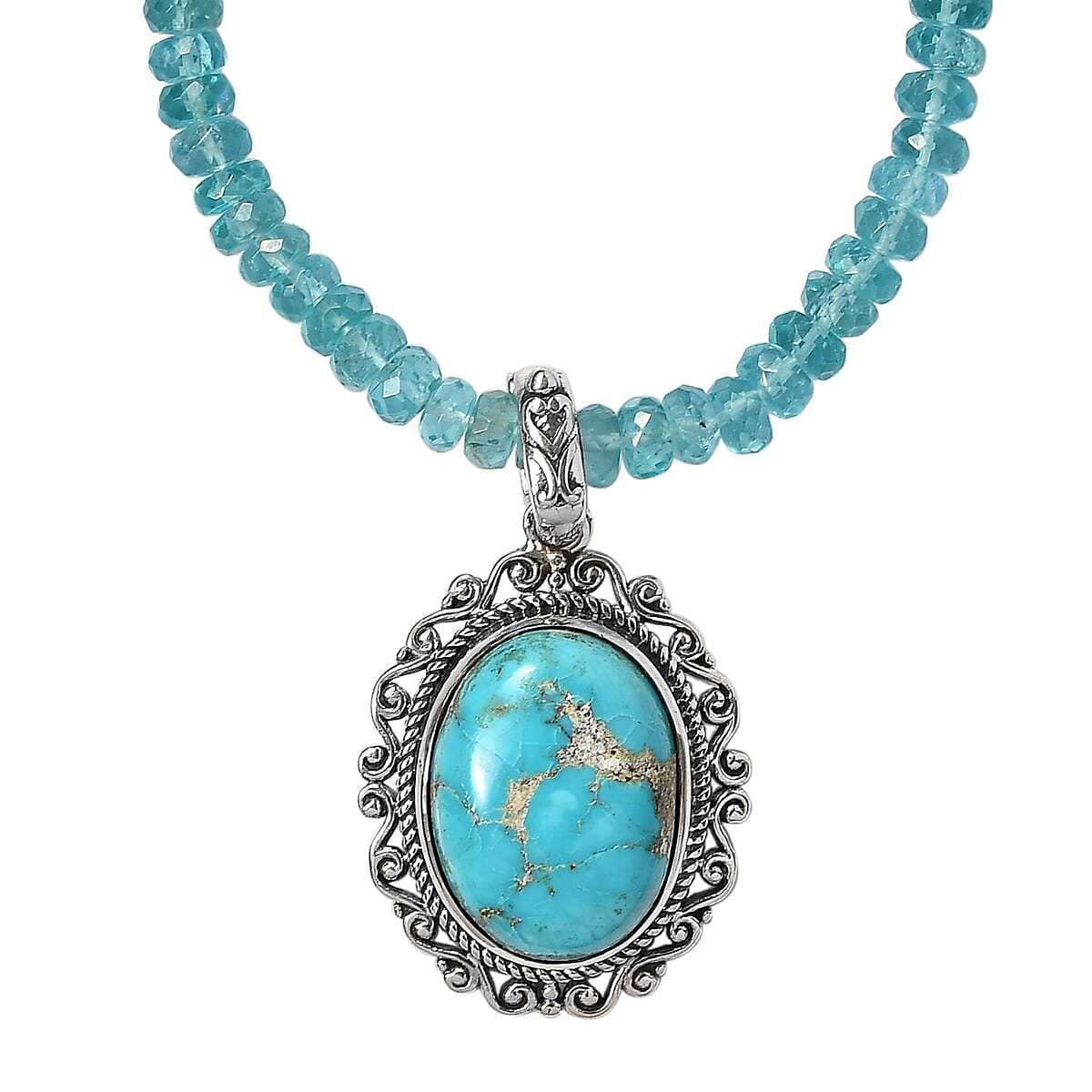 Artisan Crafted South Hill Turquoise Pendant with Apatite Beaded Necklace 20 Inches in Sterling Silver 84.50 ctw